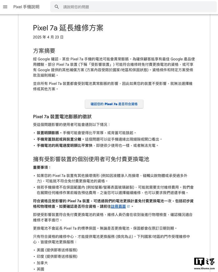 IT之家4月24日消息,谷歌昨日在“Pixel手机帮助”页面发文,推出Pixel7a电池“鼓包”解决方案,方案中包含免费更换电池或现金/折扣码补偿。